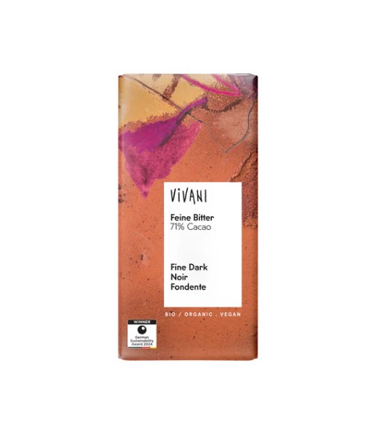 Dodání do 3 pracovních dnů Čokoláda hořká 71 % 80 g BIO VIVANI PeMi kód: 730704 EAN: 4044889005271 Kakaová hmota*, přírodní třtinový cukr*, kakaové máslo*. Obsah kakaové sušiny nejméně 71 %. Může obsahovat stopy skořápkových plodů, mléka a lepku. *produkt kontrolovaného ekologického zemědělství<p><strong>Kalorická hodnota/energie (na 100ml):</strong>2425kJ/585kcal 78 Kč Do košíku