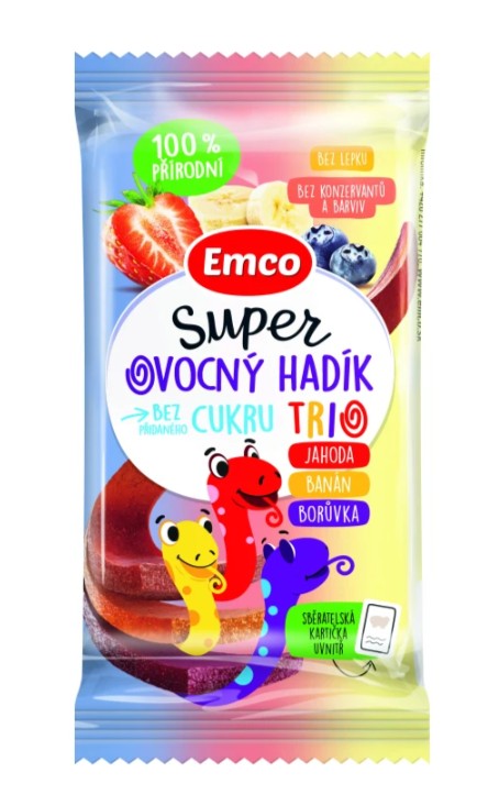Skladem EMCO Super ovocný hadík Trio 20g borůvka PeMi kód: 734233 EAN: 8595229930624 Super ovocná svačinka nejen pro děti. Ideální do školy pro každého mlsala. Uvnitř balení se choulí 2 ovocné trojité pásky kombinující 3 příchutě – hadíci. Hadíci neobsahují žádný přidaný cukr a sladcí jsou jen díky ovoci. Hravě a zdravě nahradí bonbony či jiné sladkosti 23 Kč Do košíku