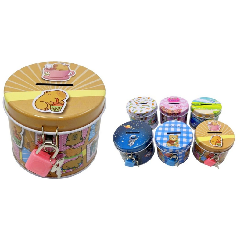 Skladem Plechová pokladnička PeMi kód: 734829 EAN: 6870687808824 Plechová pokladnička se zámkem, rozměr 8 x 6,5 cm, mix 7 barev/motivů. Nevhodné pro děti do 3 let. 29 Kč Do košíku