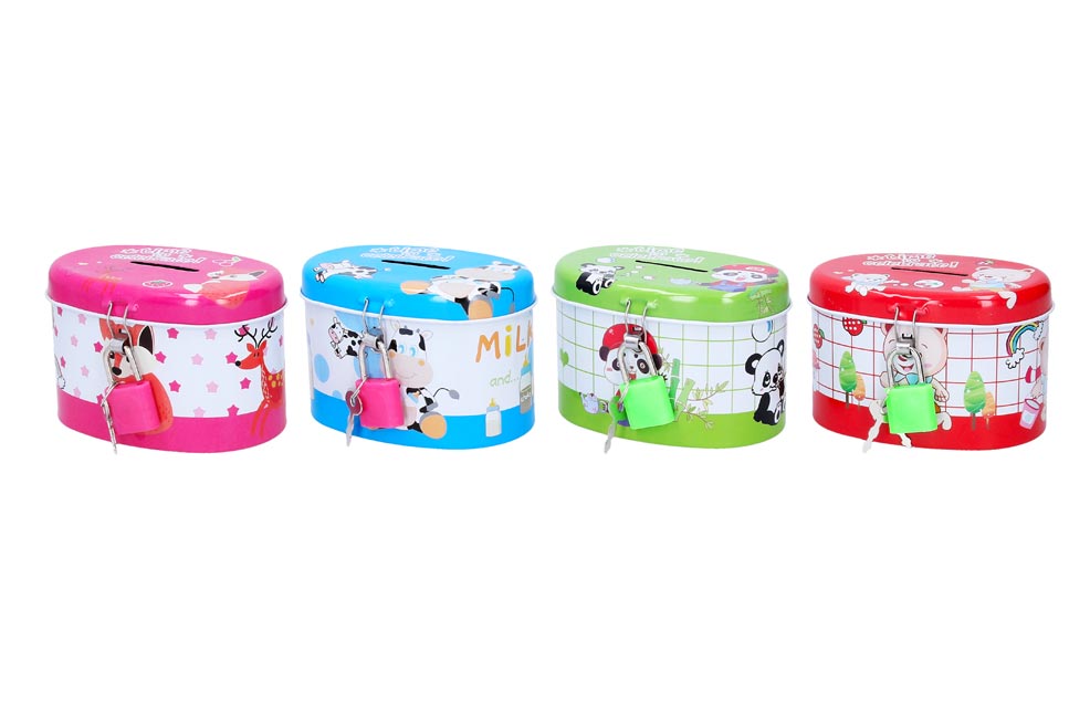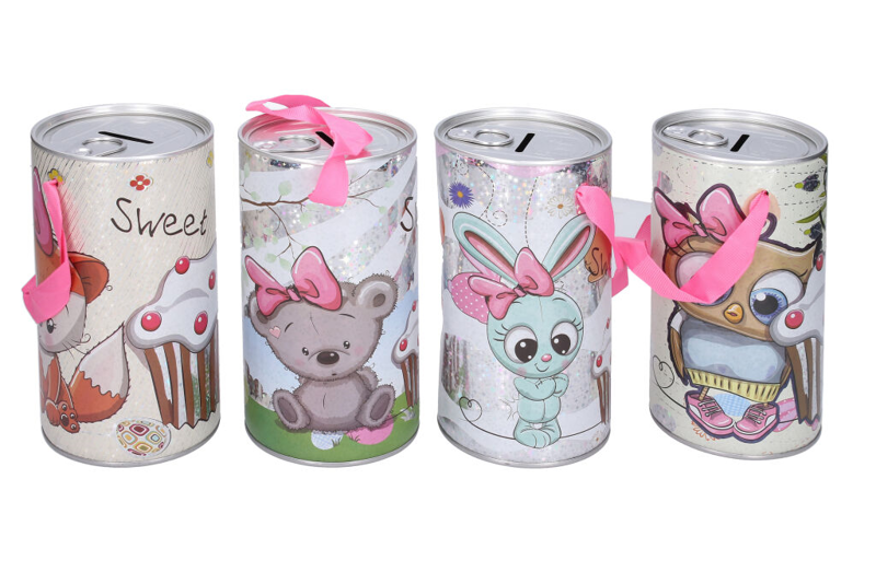 Dodání do 3 pracovních dnů Pokladnička W010911 plechová ovál 10x6,5 cm PeMi kód: 723593 EAN: 8590331924325 Plechová oválná pokladnička s motivy zvířat. Dodáváme v mixu 4 ks dle skladové zásoby. Uvedená cena je za 1 ks. 40 Kč Do košíku