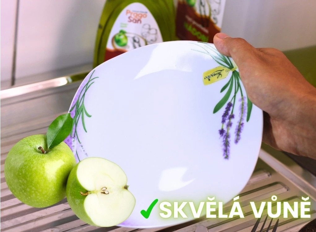 Koncentrovaný český čistící přípravek s vůní zeleného jablka pro snadnější ruční mytí nádobí
