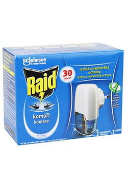 Skladem Raid elektrický odpařovač s tekutou náplní proti komárům, 30 nocí, 1+21 ml PeMi kód: 520559 EAN: 5000204710274, 5000204751192 Elektrický odpařovač s tekutou náplní Raid je insekticidní přípravek, který zaručuje ochranu proti otravným komárům, i tygřím, a drobnému létajícímu hmyzu ve dne i v noci. 187 Kč Do košíku