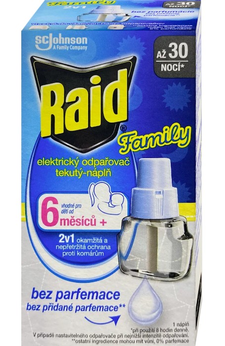 Skladem Raid Family el tekutá náplň 30nocí PeMi kód: 558776 EAN: 5000204190236 Tento přípravek je speciálně vyrobený pro děti od 6 měsíců. Balení obsahuje náhradní náplň Raid Family. 239 Kč Do košíku