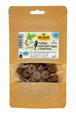 Skladem UGF pamlsek Mr. Haff moučný červ, tuňák a kopřiva 100g PeMi kód: 721893 EAN: 8594195461996 Poloměkké pamlsky s hmyzím proteinem, které jsou vyrobeny s ohledem na výživu psů. Neobsahují obiloviny ani drůbeží protein, a proto jsou skvělou volbou pro psy trpící potravinovými alergiemi. Bez barviv a dochucovadel 54 Kč Do košíku