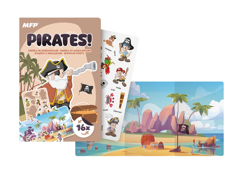 Skladem Samolepková knížka Piráti PeMi kód: 710413 EAN: 8595724404774 Připravte se na vzrušující plavbu po moři plném pokladů, odvážných pirátů a fantastických příběhů! Tato samolepková kniha "Piráti" vtáhne děti do světa lodí, map a skrytých truhlic plných zlata. Obsahuje 16 znovupoužitelných samolepek s motivy pravých pirátských hrdinů, pokladů, exotických 34 Kč Do košíku