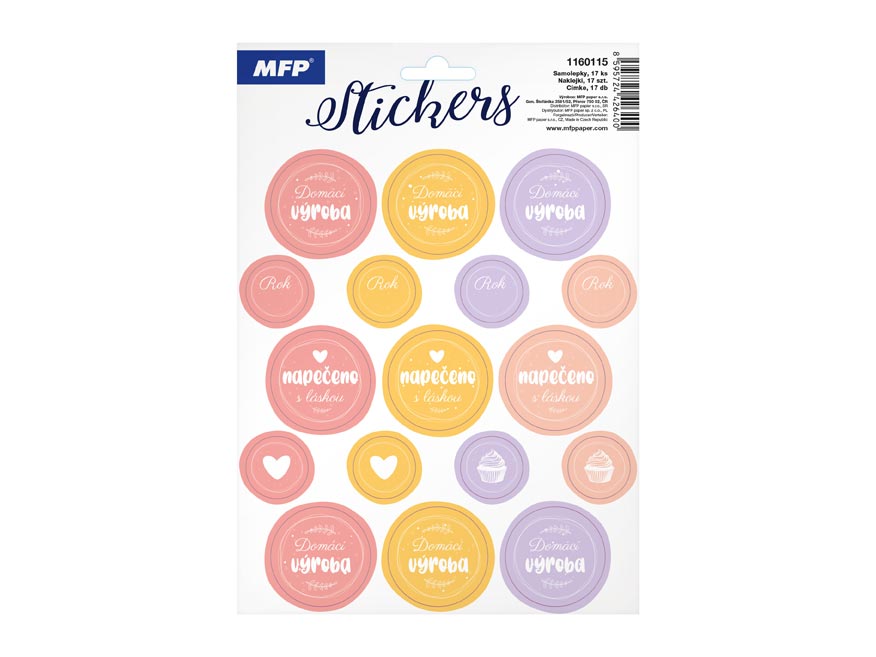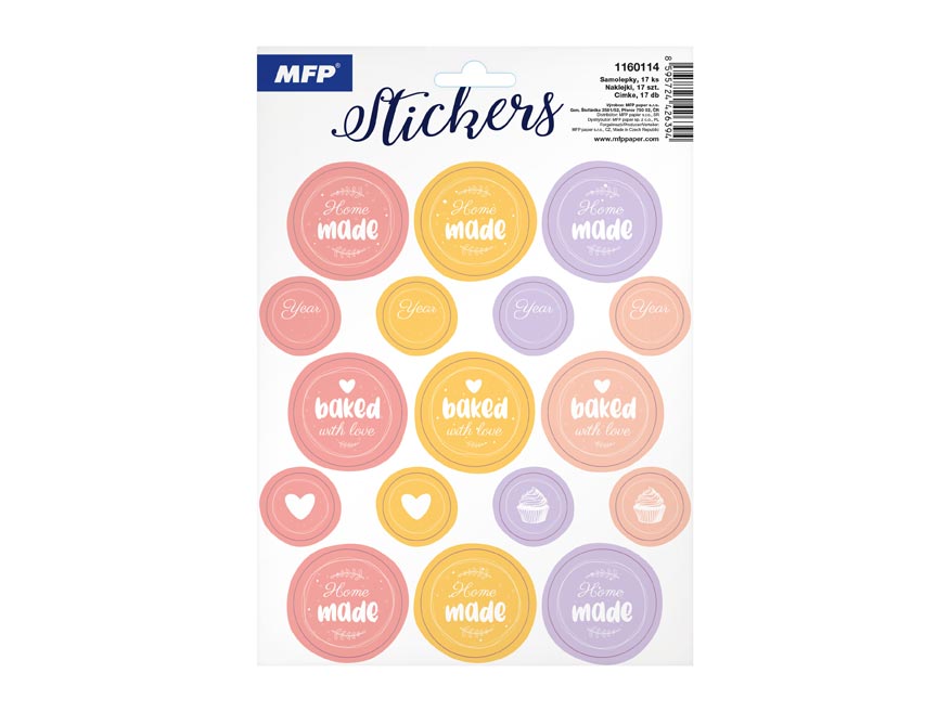 Dodání do 3 pracovních dnů Samolepky na domácí výrobu (ENG) 16,2x23cm PeMi kód: 717764 EAN: 8595724426394 Když záleží i na maličkostech! Vylaďte své domácí výrobky s elegantní sadou samolepek v jemných pastelových tónech. Najdete na nich nápisy jako "Home made", "Baked with love", "Yours", nebo symboly srdíček a cupcakes – skvěle se hodí pro označení domácího pečiva, zavařenin, dárkových balíčků či 20 Kč Do košíku