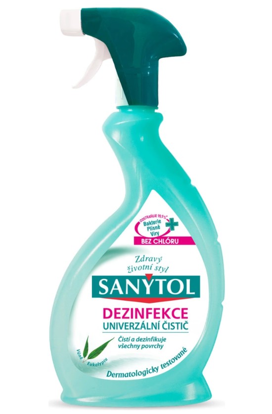 • Výhodné balení Sanytolu univerzální sprej 500 ml + Podlahy a Plochy 1 l s vůní eukalyptu. Díky trojímu účinku - bakteriálnímu, fungicidnímu a virucidnímu - dezinfikuje všechny materiály a plochy a zároveň ničí mikroby. Čistí, dezinfikuje a odmašťuje všechny plochy v domácnosti