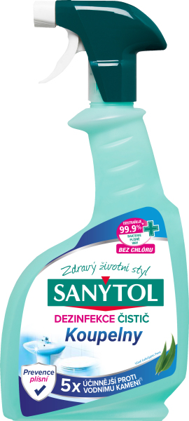 • SANYTOL Koupelny zajišťuje dokonalou hygienu. Jeho dezinfekční složka na odstraňování usazenin představuje jediný způsob, jak účinně předcházet šíření nežádoucích mikroorganismů, tvorbě plísní a usazenin. Zahubí 99,9 % bakterií, mikrobů a virů, včetně viru chřipky typu A (H1N1)