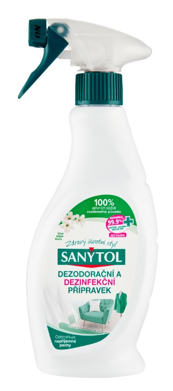 • Bakterie a plísně v prádle jsou zodpovědné za nepříjemný zápach a mohou přenášet nemoci nebo mohou způsobit podráždění pokožky. SANYTOL dezinfekční deodorant pro textilie ničí bakterie, viry a plísně. Jeho složení zbaví Vaše textilie také nepříjemného zápachu a znovu jim dodá svěžest čistého
