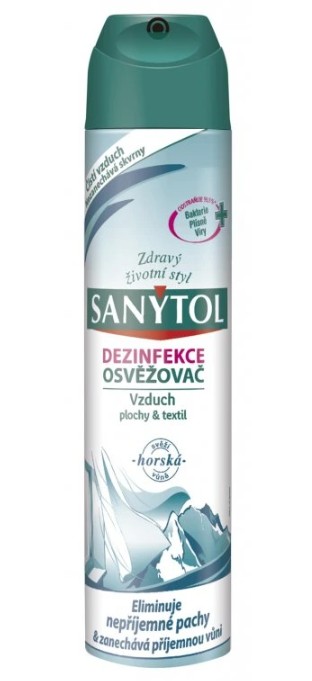 • SANYTOL vyčistí vzduch a vydezinfikuje povrchy v jednom jediném kroku. Jeho složení zajišťuje dokonalou hygienu a zanechává příjemně svěží vůni. Zahubí 99,9 % bakterií, plísní a virů, včetně viru chřipky typu A (H1N1). Dezinfikuje a čistí