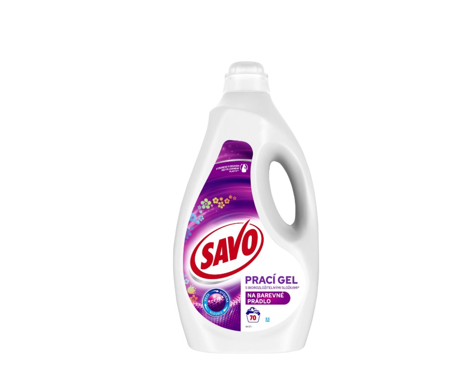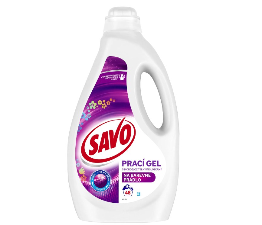 Skladem SAVO na barevné prádlo 2,4 l (48 praní) PeMi kód: 715737 EAN: 8720181258596 Prací gel - univerzální, na barevné prádlo, odstranění skvrn při praní a zachování intenzity barvy, vydrží až na 48 praní, objem 2400 ml. 371 Kč Do košíku