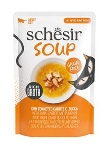 Skladem Schesir Cat kapsa Adult Soup kuře/mrkev/dýně 40g PeMi kód: 729724 EAN: 8005852125408 Schesir je nejlepší volbou, pokud chcete ideální výživu. Zdraví našich čtyřnohých přátel klademe každý den na první místo. Vytváříme receptury a formáty krmiva na základě fyziologických charakteristik a specifických nutričních potřeb vaší kočky, přičemž vždy respektujeme její přirozené 20 Kč Do košíku