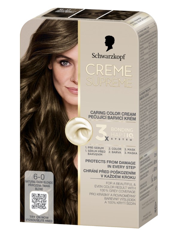 Skladem Creme Supreme 6-0 Přirozená tmavá blond PeMi kód: 728315 EAN: 9000101745962 Schwarzkopf Creme Supreme 6-0 Přirozená tmavá blond je profesionální krémová barva na vlasy, která poskytuje intenzivní, dlouhotrvající a rovnoměrné krytí. Díky své bohaté, pečující receptuře s obsahem vyživujících olejů a mikro-pigmentů dodává vlasům přirozený odstín tmavé blond s 214 Kč Do košíku