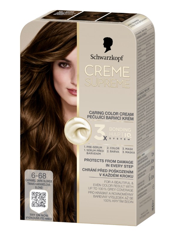 Skladem Creme Supreme 6-68 Tmavá karamel blond PeMi kód: 728316 EAN: 9000101746525 Schwarzkopf Creme Supreme 6-68 Tmavá karamelová blond je luxusní krémová barva na vlasy, která spojuje intenzivní barevný výsledek s hloubkovou péčí. Díky bohaté receptuře s mikro-pigmenty a pečujícími oleji poskytuje sytý, teplý karamelový odstín s přirozeným leskem a zároveň chrání 214 Kč Do košíku