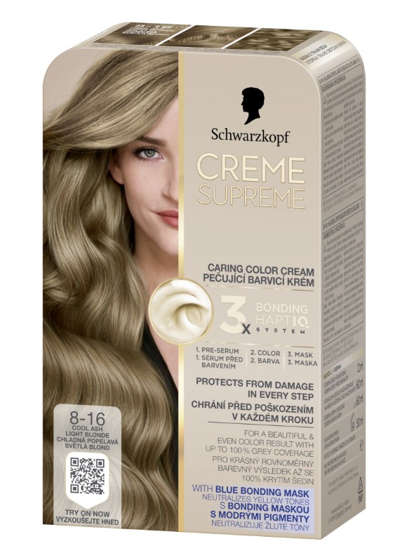 Skladem Creme Supreme 8-16 Chlad popel sv blond PeMi kód: 728318 EAN: 9000101745580 Permanentní barva na vlasy Schwarzkopf Creme Supreme 8-16 poskytuje svěží, elegantní velmi světlý blond odstín s chladným popelavým tónem. Barva je navržena tak, aby dodala vlasům rovnoměrný a profesionální výsledek, zároveň je chránila a vyživovala díky technologii Bonding HaptIQ, 214 Kč Do košíku