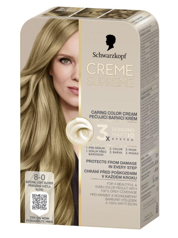 Skladem Schwarzkopf Creme Supreme barva na vlasy 8-0 přirozená světlá blond 60 ml PeMi kód: 735775 EAN: 9000101744941 Schwarzkopf Creme Supreme 8-0 Přirozená světlá blond je permanentní barva na vlasy, která nabízí přirozený a svěží odstín světlé blond s jemným teplým nádechem. Díky inovativní technologii Bonding HaptIQ poskytuje intenzivní ochranu a péči, čímž zajišťuje krásný a jednotný barevný 234 Kč Do košíku