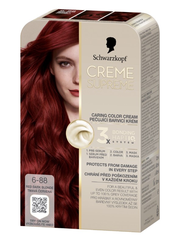 Skladem Schwarzkopf Creme Supreme barva na vlasy 6-88 tmavě červená 60 ml PeMi kód: 735787 EAN: 9000101746907 Schwarzkopf Creme Supreme 6-88 – Tmavě červená je profesionální krémová barva na vlasy, která nabízí intenzivní a sytý červený odstín s dlouhotrvajícím efektem. Krémová konzistence umožňuje rovnoměrné nanesení a perfektní krytí od kořínků po konečky 234 Kč Do košíku