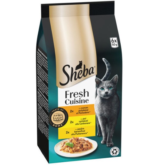 Skladem Sheba kapsa Fresh Cuisine - Taste of Rome 6x50g PeMi kód: 718108 EAN: 4770608266882 Kompletní vyvážené krmivo pro dospělé kočky. Čerstvé porce drobně krájených kousků masa s lahodnými omáčkami v kapsičkách. Gurmánský požitek pro vaši kočičku ve 3 různých příchutích - krůta, kuřecí a drůbeží. Vyrobeno z pečlivě vybraných surovin. Bez umělých barviv a konzervantů 79 Kč Do košíku