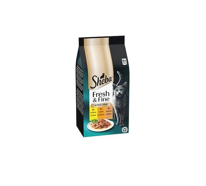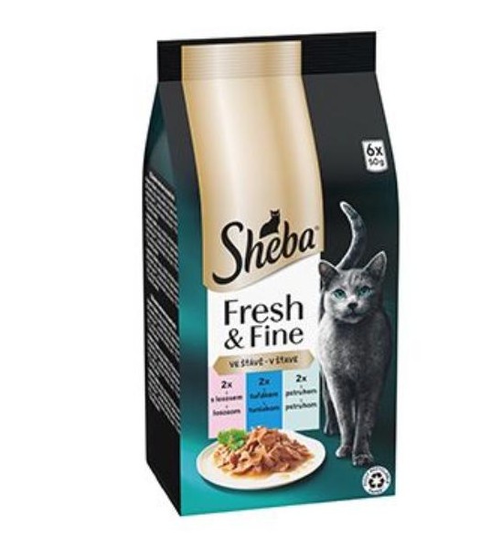 Skladem Sheba kapsa Fresh&Fine mix kuře,losos,krůta 6x50g PeMi kód: 718111 EAN: 4770608266622 Kompletní, vyvážené krmivo pro dospělé kočky, kapsičky s kousky kuřecího masa, lososa a krůtího masa ve šťávě. 79 Kč Do košíku