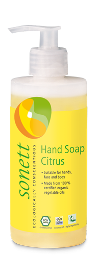 Dodání do 5 pracovních dnů Sonett Tekuté mýdlo - citrus BIO 1 l - pro vaše ruce, obličej i celé tělo PeMi kód: 730096 EAN: 4007547302549 100% přírodní, jemné a pečující tekuté mýdlo s příjemnou citrusovou vůní od Sonettu je vhodné na mytí rukou, obličeje i celého těla. Všechny použité oleje i éterické oleje jsou v BIO kvalitě nebo pochází z volného sběru v přírodě. 349 Kč Do košíku