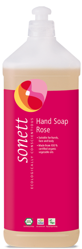 Dodání do 5 pracovních dnů Sonett Tekuté mýdlo - růže BIO 1 l - pro vaše ruce, obličej i celé tělo PeMi kód: 730086 EAN: 4007547205147 100% přírodní, jemné a pečující tekuté mýdlo s hřejivou vůní damašské růže od Sonettu je vhodné na mytí rukou, obličeje i celého těla. Všechny použité oleje i éterické oleje jsou v BIO kvalitě nebo pochází z volného sběru v přírodě. 379 Kč Do košíku