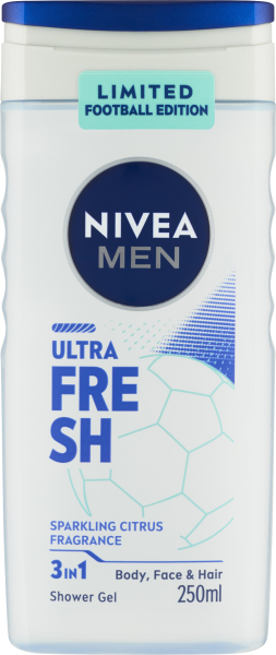 Skladem Nivea Men Ultra Fresh sprchový gel, 250 ml PeMi kód: 697935 EAN: 9005800396484, 9005800378787 Sprchový gel pro muže na tělo, tvář a vlasy 3 v 1 s osvěžující vůní citrusů. 105 Kč Do košíku