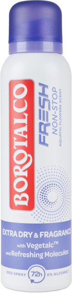 Skladem Borotalco Deo sprej Fresh, 150 ml PeMi kód: 720092 EAN: 8002410046595 Zažijte neodolatelný pocit čistoty a svěžesti s Borotalco Deo sprejem Fresh Non Stop 150 ml . Díky inovativní technologii Microtalco absorbuje nadměrnou vlhkost a zanechává pokožku suchou, chráněnou a svěže provoněnou až 48 hodin 116 Kč Do košíku