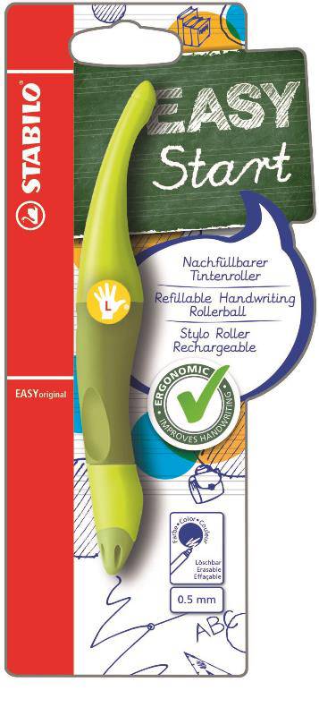 Roller v ergonomickém tvaru, ve variantě zvlášť pro leváky a praváky. Moderní alternativa plnícího pera. Úchopová zóna z neklouzavého materiálu. Uvolněné držení napomáhá proti předčasné únavě svalstva ruky a bolestem ruky při psaní (případné bolesti zad a hlavy). Díky kuličce v náplni lehce klouže po papíře, lehká a komfortní manipulace. Nový hrot s každou novou náplní, velmi jednoduchá výměna. Modrý zmizíkovatelný inkoust. Náplně tlouštky 0,5 mm a 0,3 mm. Se štítkem na jméno.