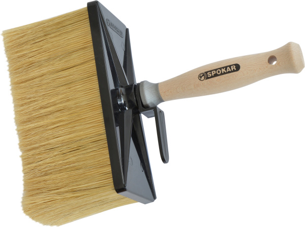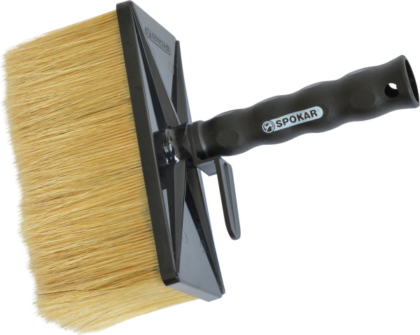 Skladem Spokar hranatá malířská štětka, 180 × 65 mm, č. 4A PeMi kód: 265256 EAN: 8593534610026 Malířská štětka je vhodná na veškeré běžné nátěry zdiva. Držadlo je plastové se závitem a vlákna čistá přírodní štětina. Délka pracovní části činí 180 mm, šířka pracovní části 65 mm a viditelná délka vláken 97 mm. 965 Kč Do košíku