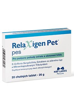 Skladem Relaxigen Pet pro psy 20tbl PeMi kód: 721675 EAN: 8056590980460 Pro podporu pohody zvířete a obnovení klidu. Doplňkové krmivo pro psy všech věkových kategorií obsahující Griffonia Simplicifolia , extrakt ze zeleného čaje a mikroenkapsulovaný tributyrát. Doporučuje se ve všech situacích, kdy dochází k nepřiměřené nebo nadměrné reakci psa na stres, např 812 Kč Do košíku