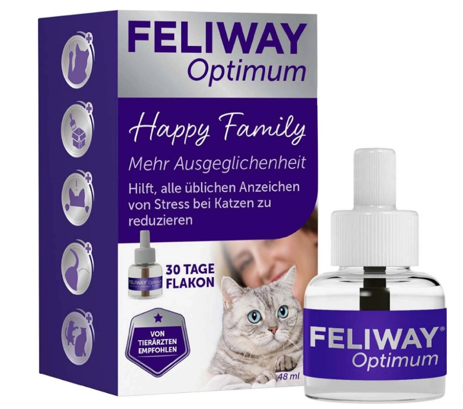 Skladem Feliway Optimum difuzér + lahvička s náplní 48ml PeMi kód: 729633 EAN: 3411113141233 Kočky přirozeně uvolňují feromony, z nichž některé působí jako neviditelné zklidňující signály. FELIWAY Optimum obsahuje nejpokročilejší komplex kočičích feromonů, který vyvinuli členové výzkumného týmu FELIWAY 1 039 Kč Do košíku
