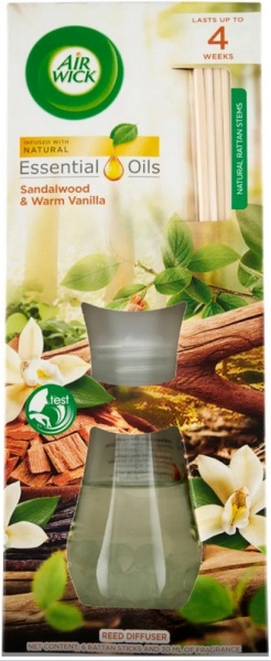 Skladem Air Wick Essential Oils vanilka a santalové dřevo vonné tyčinky, 30 ml PeMi kód: 734203 EAN: 5999109544322 Air Wick Essential Oils Vanilka a santalové dřevo – vonné tyčinky 30 ml přinášejí do vašeho domova příjemnou, hřejivou vůni kombinace sladké vanilky a jemně dřevitého santalového dřeva. 153 Kč Do košíku
