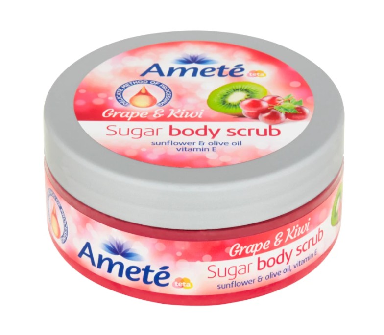 • Cukrový tělový scrub s výtažky z ovoce díky přírodním krystalům cukru pokožku jemně masíruje a odstraňuje odumřelé kožní buňky. Obsahuje vitamín E, slunečnicový a olivový olej, který pokožku dokonale zvláčňuje a zanechá ji čistou a hedvábně jemnou