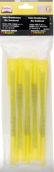 Skladem Pattex Směšovač k chemické kotvě 5 ks PeMi kód: 728831 EAN: 4006863863000 Směšovače jsou speciálně navržené plasticové trysky pro použití s chemickými kotvami Pattex. Jednorázové trysky umožňují dokonalé smísení obou složek kotvy přímo při aplikaci, což zajišťuje kvalitní a pevné spojení. Dodávají se v praktickém balení po pěti kusech 148 Kč Do košíku