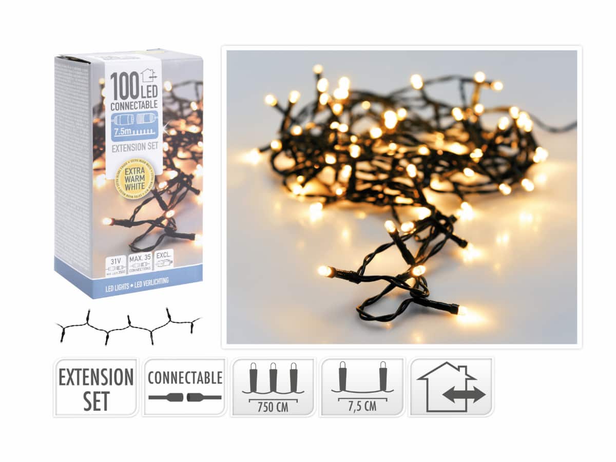 Dodání do 5 pracovních dnů řetěz světelný prodlužující 750cm LED 100 bílý PeMi kód: 735315 EAN: 8719202351736 Rozšiřující sada pro světlené řetězy s konektory po obou stranách.Délka 750cm. Pro vnitřní i venkovní použití. Zahrnuje 100 LED žárovek s teplou bílou barvou světla.Síťový adaptér není součástí balení a prodává se zvlášť. 127 Kč Do košíku