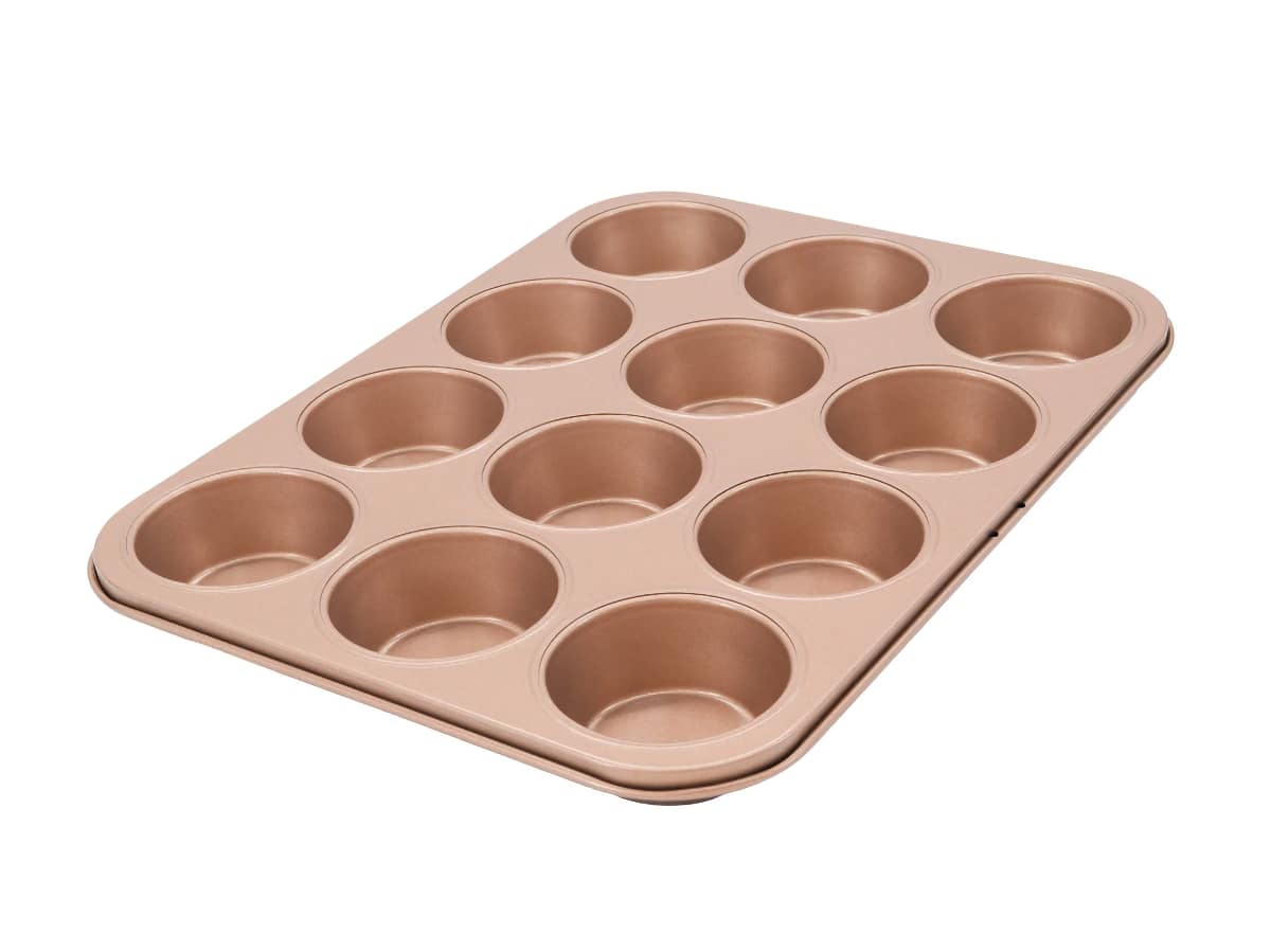 Dodání do 5 pracovních dnů forma MUFFINY 12ks ROSE PeMi kód: 729903 EAN: 5051126875886 Materiál: uhlíková ocel s nepřilnavým povrchem.Tloušťka plechu: 0,35mm Barva: růžovo-zlatá 208 Kč Do košíku
