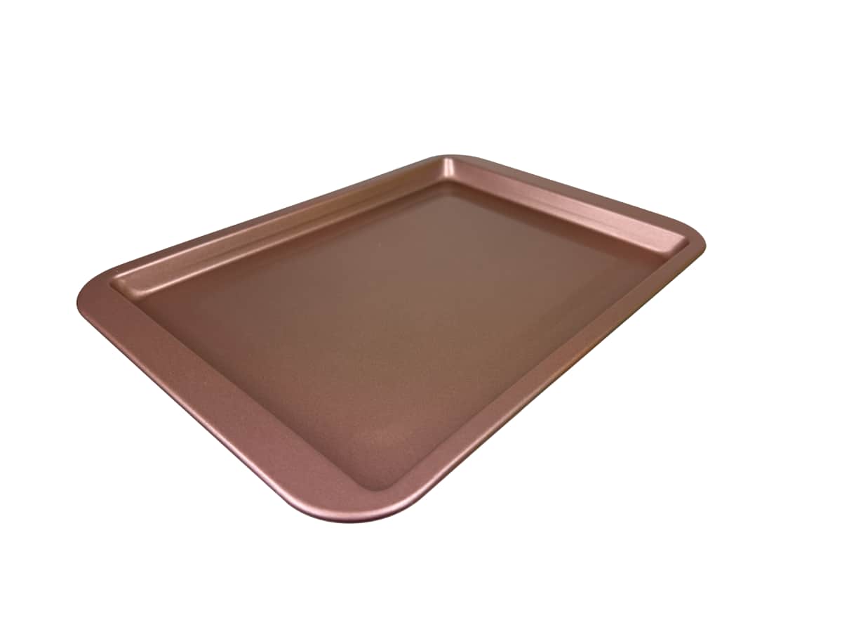Dodání do 5 pracovních dnů plech 33x23x1,5 na pečení ROSE PeMi kód: 730660 EAN: 5051126875848 Materiál: uhlíková ocel s nepřilnavým povrchem.Tloušťka plechu: 0,35mm Barva: růžovo-zlatá 169 Kč Do košíku