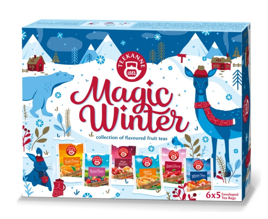 Sleva 16% Skladem Magic Winter kolekce 6x5ks 71,25g PeMi kód: 736356 EAN: 5901086075317 apírová krabička o obsahu 6-ti druhů čajů Teekanne po 5-ti nálevových sáčcích -Fresh Orange, Forest Fruits, Magic Moments, Ginger&Orange, Let it snow, Winter Time. 89 Kč 75 Kč Do košíku