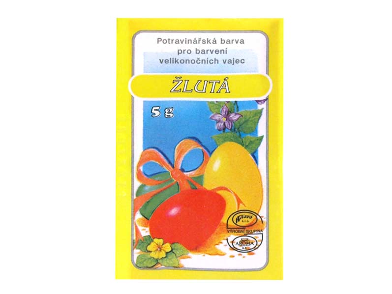 Dodání do 3 pracovních dnů Velikonoční barvy na vajíčka 701 žlutá 5g PeMi kód: 724350 EAN: 8590105964014 Jeden sáček obsahuje 5 g potravinářské barvy k obarvení velikonočních vajíček na žluto. Barva nese označení Český výrobek. NÁVOD: 1. Obsah sáčku rozpusťte ve 1/4 l vody (70°C), přidejte 1-2 lžíce octa. 2. Vložte čistá, odmaštěná a natvrdo uvařená vejce na 2-5 minut. 3 10 Kč Do košíku