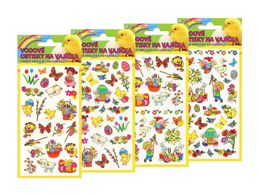 Dodání do 3 pracovních dnů Velikonoční obtisky na vajíčka 776 vodové 19x9cm PeMi kód: 728441 EAN: 4711158105597 Vodové obtisky na vajíčka s velikonočními motivy. Na podkladovém papíře je 28 barevných obtisků s různými jarními motivy. Jak nalepit obtisk na velikonoční vajíčko: 1. Vystřihněte zvolený motiv 2. Odstraňte krycí fólii a celý obrázek ponořte do misky s vodou. 3 16 Kč Do košíku