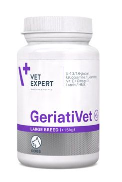 Skladem VetExpert GeriatiVet Dog Large Breed 45tbl PeMi kód: 730985 EAN: 5907752658426 Určeno pro starší psy, především v seniorském věku, kdy podávání tohoto specifického doplňku krmiva snižuje riziko zdravotních potíží spojených s vyšším věkem. Výrobek chrání a podporuje klouby a močové cesty, stimuluje imunitní systém, zlepšuje zrak, podporuje správnou funkci srdce, nervového 444 Kč Do košíku