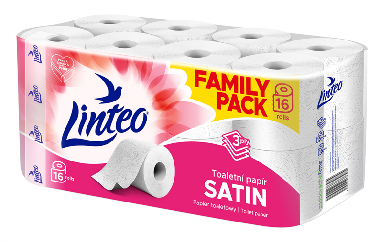 Skladem Toaletní papír Linteo Satin 16ks PeMi kód: 726726 EAN: 8594158373984 Jemný bílý 3vrstvý toaletní papír balený po 16 rolích. Toaletní papír Linteo je vyroben ze 100 % celulózy, nabízí vám pevnost a jemnost. Návin jedné role je 15 m. 134 Kč Do košíku