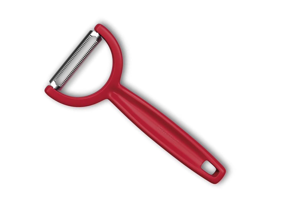 • Škrabka YPSO pro ovoce a zeleninu protáhlých tvarů,ultra ostrá, nerezová čepel, oboustranné vroubkované ostří. Materiál rukojeti: polypropylen,lze mýt v myčce na nádobí.Švýcarská kvalita