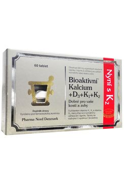 Skladem Bioaktivní Kalcium + D3 + K1+K2 60tbl PeMi kód: 215220 EAN: 5709976131200, 5709976133204 Bioaktivní Kalcium, D3, K1 a K2 je doplněk stravy ve formě tablet, který obsahuje vysoké množství snadno vstřebatelného vápníku (kalcia) v kombinaci s vitaminy D a K. Vitamín D přispívá k normálnímu vstřebávání a využití vápníku, k normální hladině vápníku v krvi a k udržení normálního stavu 315 Kč Do košíku