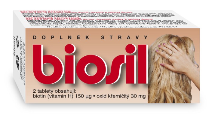 Skladem Biosil 60tbl Naturvita PeMi kód: 721562 EAN: 8594026360085 Biosil je doplněk stravy s obsahem biotinu (vitaminu H) a oxidu křemičitého. Biotin přispívá k udržování normálního stavu vlasů, pokožky a sliznic. Komfortní užívání. V jedné tabletě: Biotin 75 µg, oxid křemičitý 15 mg. Balení obsahuje 60 tablet. Hmotnost obsahu 18 g 94 Kč Do košíku
