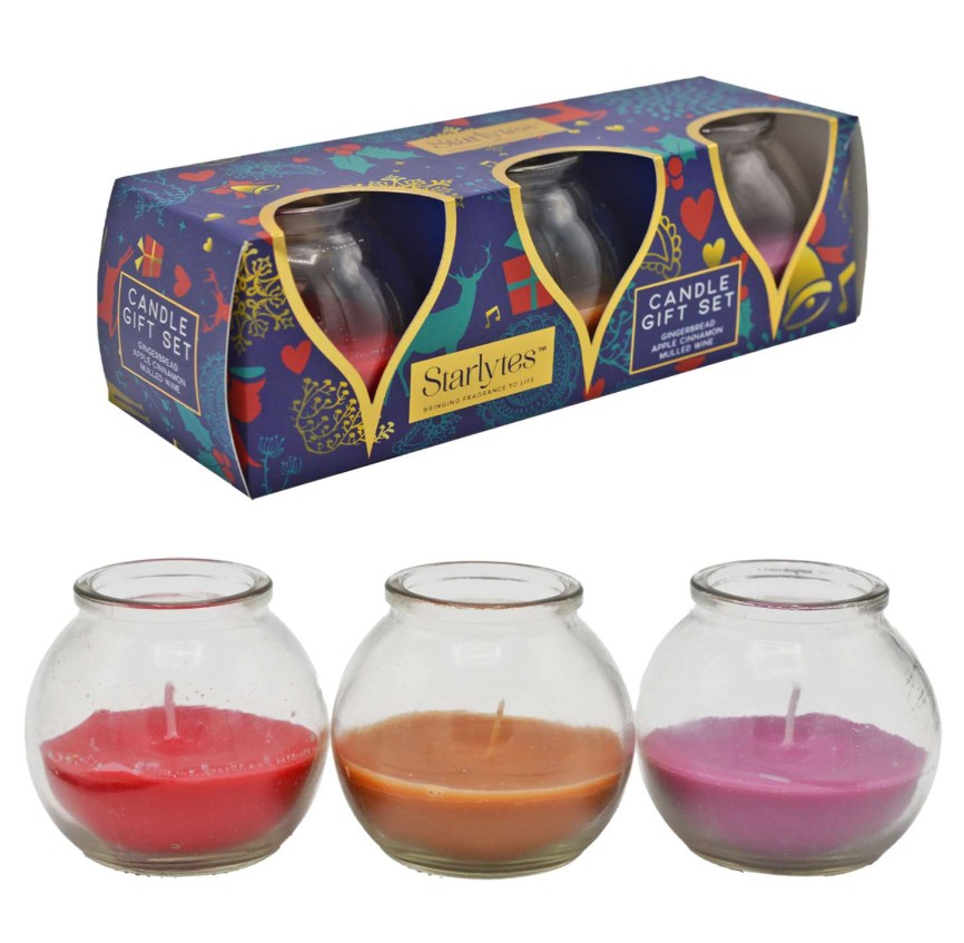 Skladem Starlytes set svíčka 3x43g votivní PeMi kód: 735057 EAN: 5060677906260 3 svíčky v krabičce. Vůně zahrnují: Perník Jablko skořice Svařené víno Doba hoření: 10 hodin. Velikost svíčky: cca 6 cm (šířka) x 6 cm (výška). Hmotnost: 43 g. 117 Kč Do košíku
