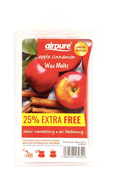 Skladem Airpure*Wax Melts 86g +25% Apple Cinnamon PeMi kód: 732932 EAN: 5060194130322 Airpure vosk do a 45 Kč Do košíku