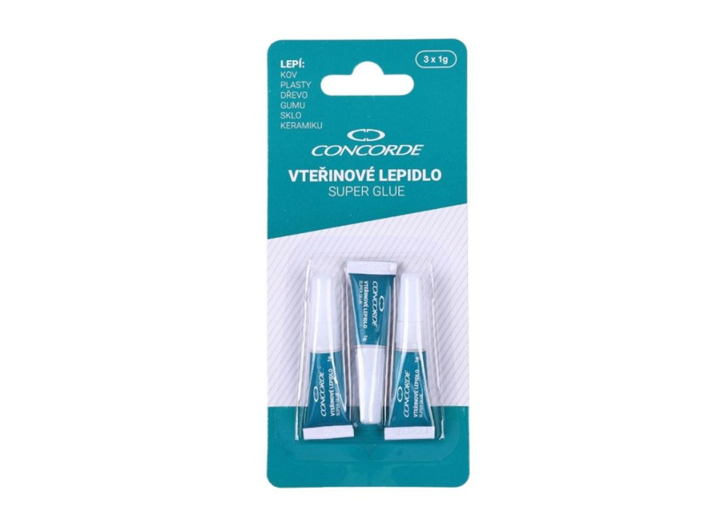 Skladem Vteřinové lepidlo Super glue 3ks PeMi kód: 721056 EAN: 8595097834215 Vteřinové lepidlo Concorde 3 ks / 1 g - blistr. 19 Kč Do košíku