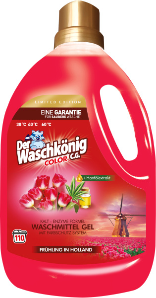 • Waschkönig Color je prací gel pro barevné prádlo s formulí pro odstranění nečistot a skvrn již od 20 °C při zachování barev. Účinně odstraňuje odolné skvrn z tkanin při nízkých teplotách, chrání je před poškozením a zanechá příjemnou vůni
