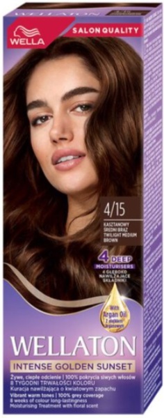 Skladem Wella Wellaton barva na vlasy Zářivě Hnědá 4/15 PeMi kód: 728567 EAN: 4064666942780 Permanentní barva na vlasy Wellaton v odstínu 4/15 Zářivě hnědá zajišťuje 100% krytí šedivých vlasů a intenzivní odstín s hloubkovým proniknutím barvy díky technologii High Dye Loaded. 113 Kč Do košíku